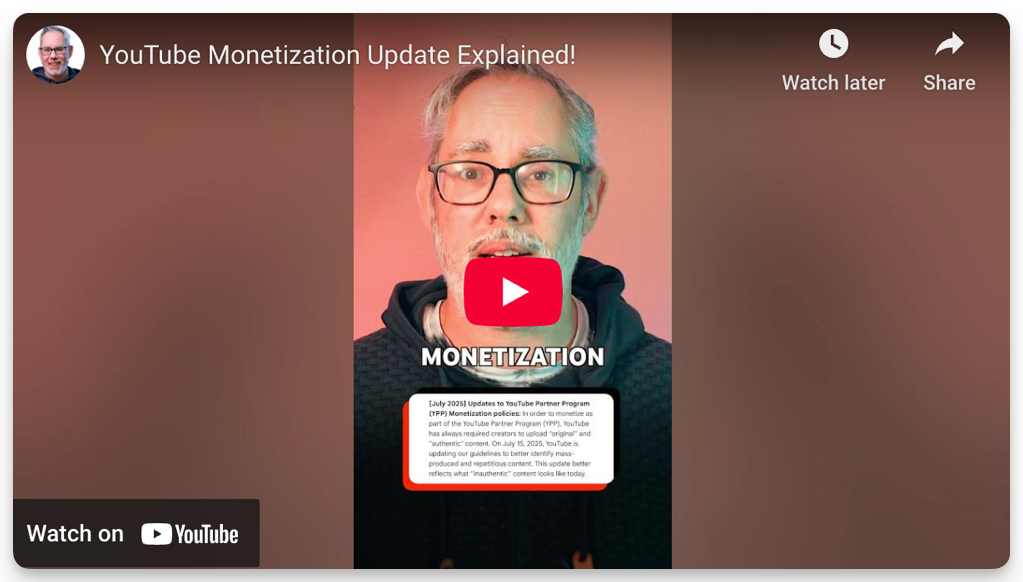 YouTube announced that they’ve begun to demonetize certain types of potentially AI-generated content as of July 15th.